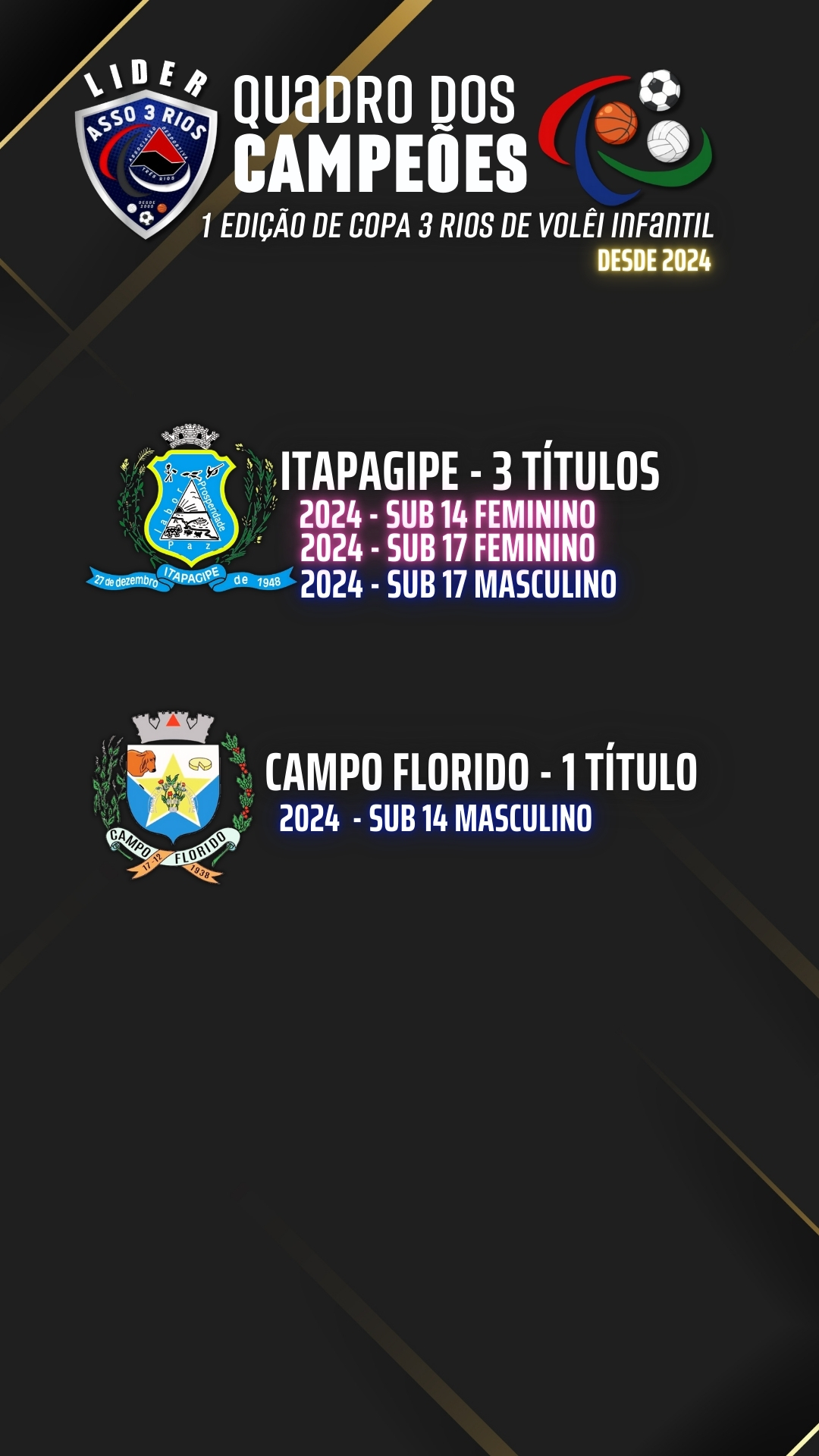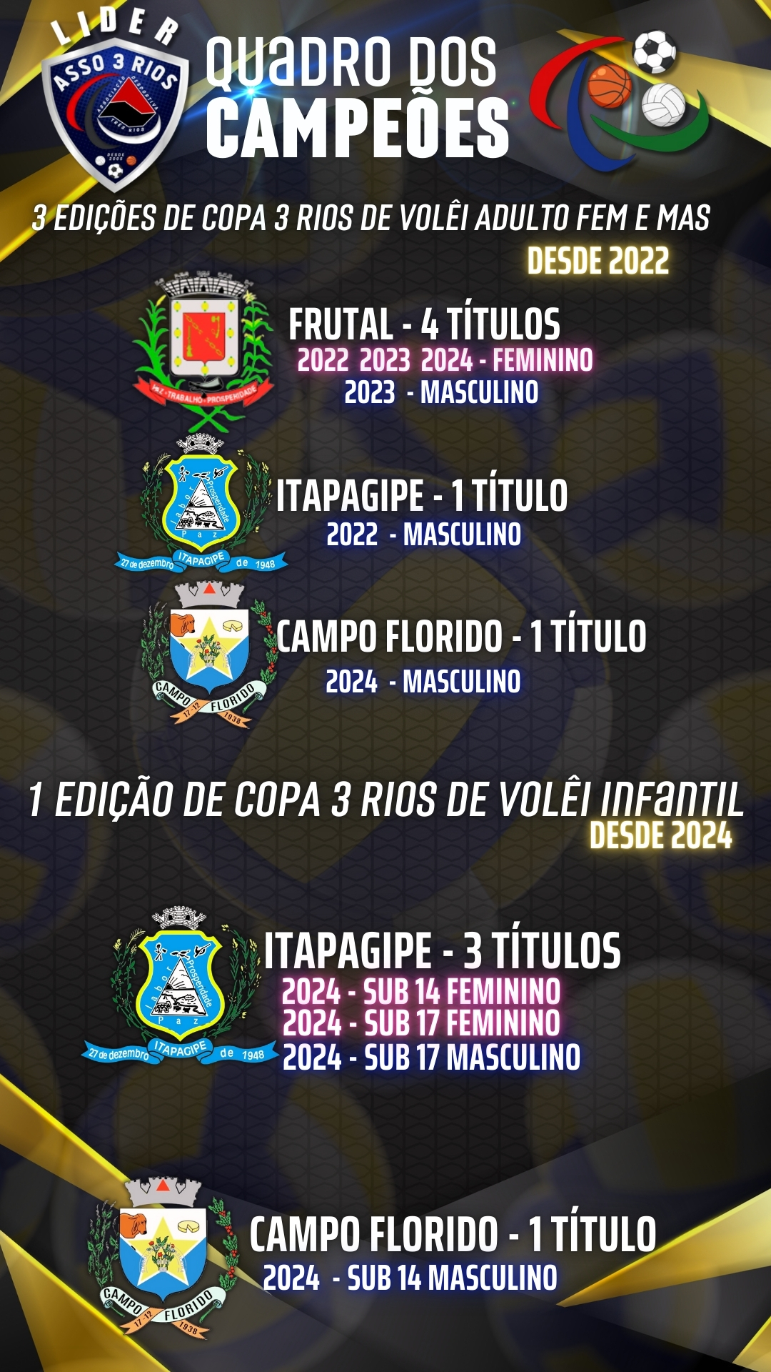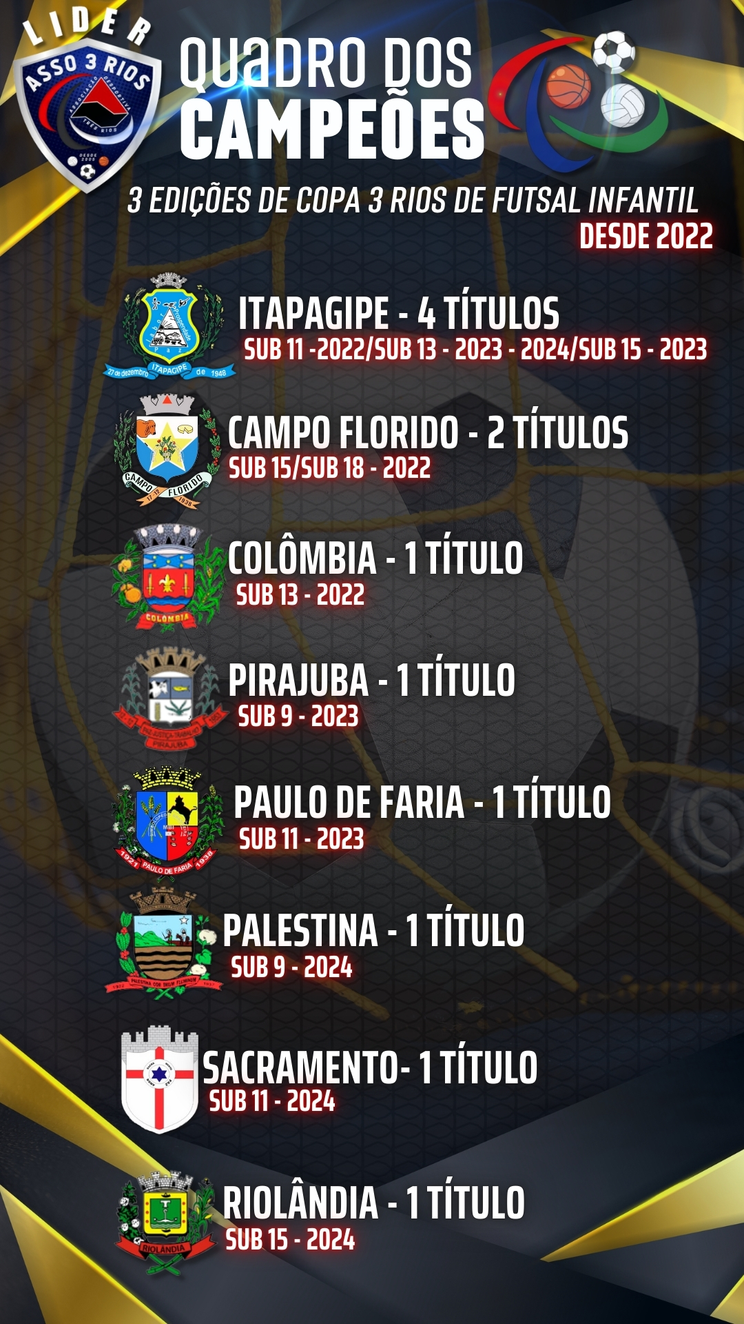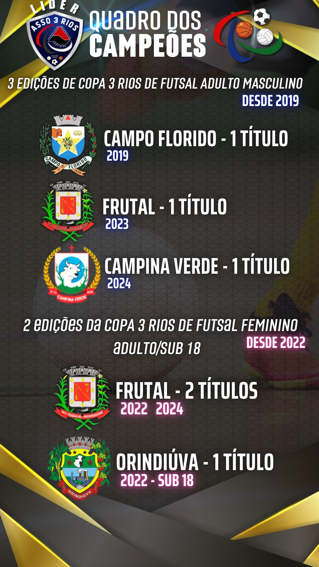 Todas as competições terão seus jogos realizados nos finais de semana, aos sábados e domingos com exceção da Copa Três Rios De Futsal que terão seus jogos aos meios de semana.